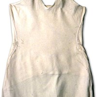 A pair of woman's white cotton interlock combinations called by the manufacturer 'step-ins'. The front and the knickers back up to the waist are cut out of one piece with holes for legs. The back of the top tucks into the back of the knickers. Back and leg edges are trimmed with elasticated lace. The ribbon binding of the neck extends to form shoulder straps. It has a woven label 'Vedonis Regd. interlock, Made in England'