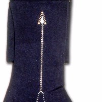 Although William Elliot invented a fast black dye for silk in the 18th century, fast black dyes for wool and silk were not achieved until the end of the 19th century. This black wool stocking which is made on a circular machine is stamped in gold 'Hawley's Hygienic Dye, Warranted Stainless & Acid Proof, Alfred Hawley, Dyer'. The clock is hand-embroidered in brown and white cotton chevening.