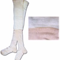 The tops, which would not be at all visible, are made of cotton, and the ankles and feet are made of silk, although the heels and toes are plated with cotton for wear.