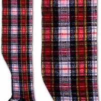 Tartan stockings were fashionable in the 1890s. This stocking is in Dress Stewart tartan, made using the intarsia technique*. The welt, heel, toe and English foot are in dark green wool. There are no manufacturer's marks.